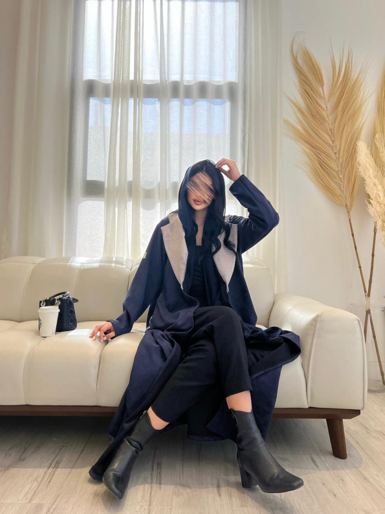 القمــاش شـامواه•الياقه جلد تمساح• من جوانب جيب مخفي